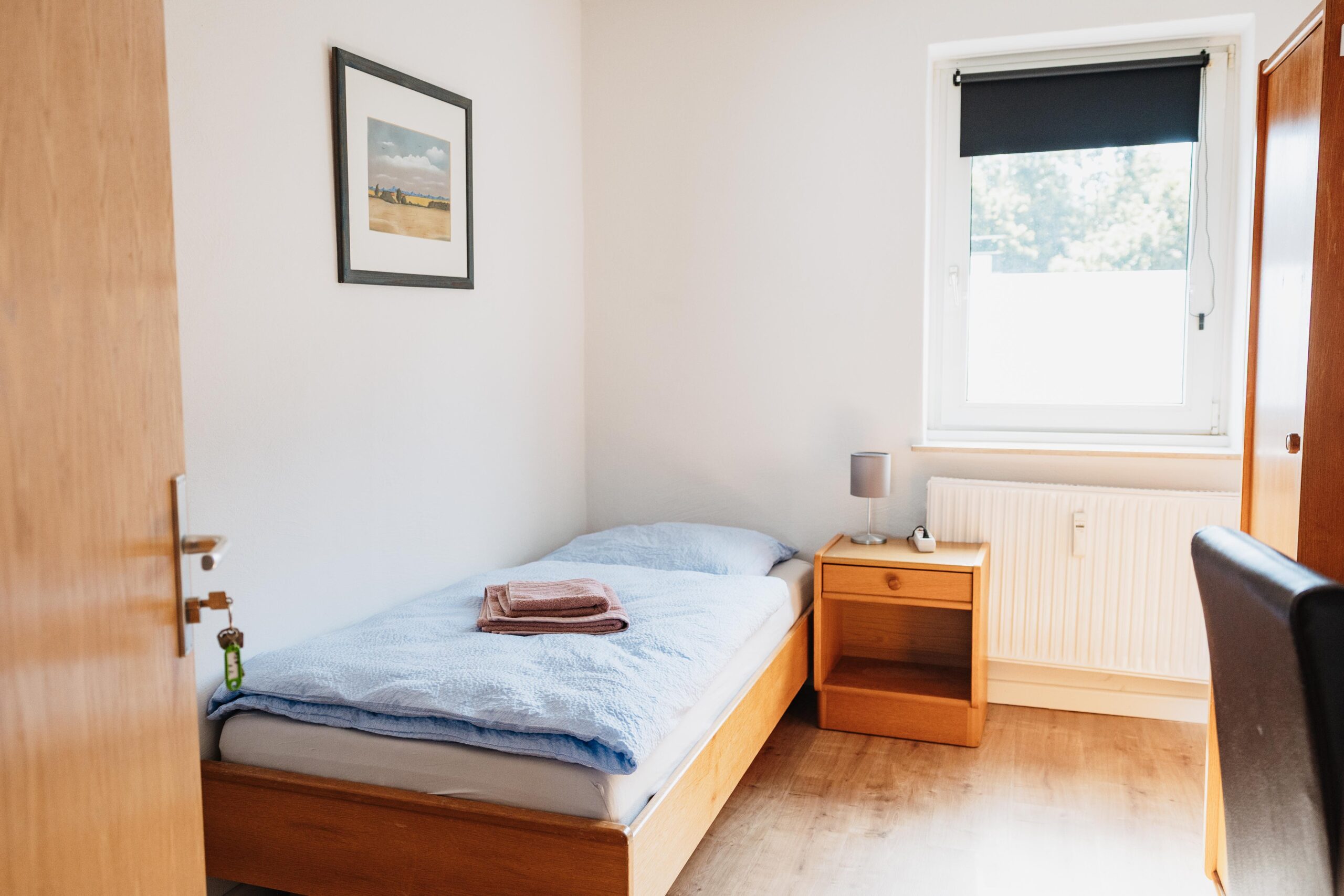L'appartement pour travailleurs à Brilon peut accueillir jusqu'à 5 personnes sur 72 m². Il se trouve au premier étage et dispose de deux chambres doubles avec lits simples et d'une chambre individuelle, idéale pour les groupes ou les collègues qui voyagent ensemble.