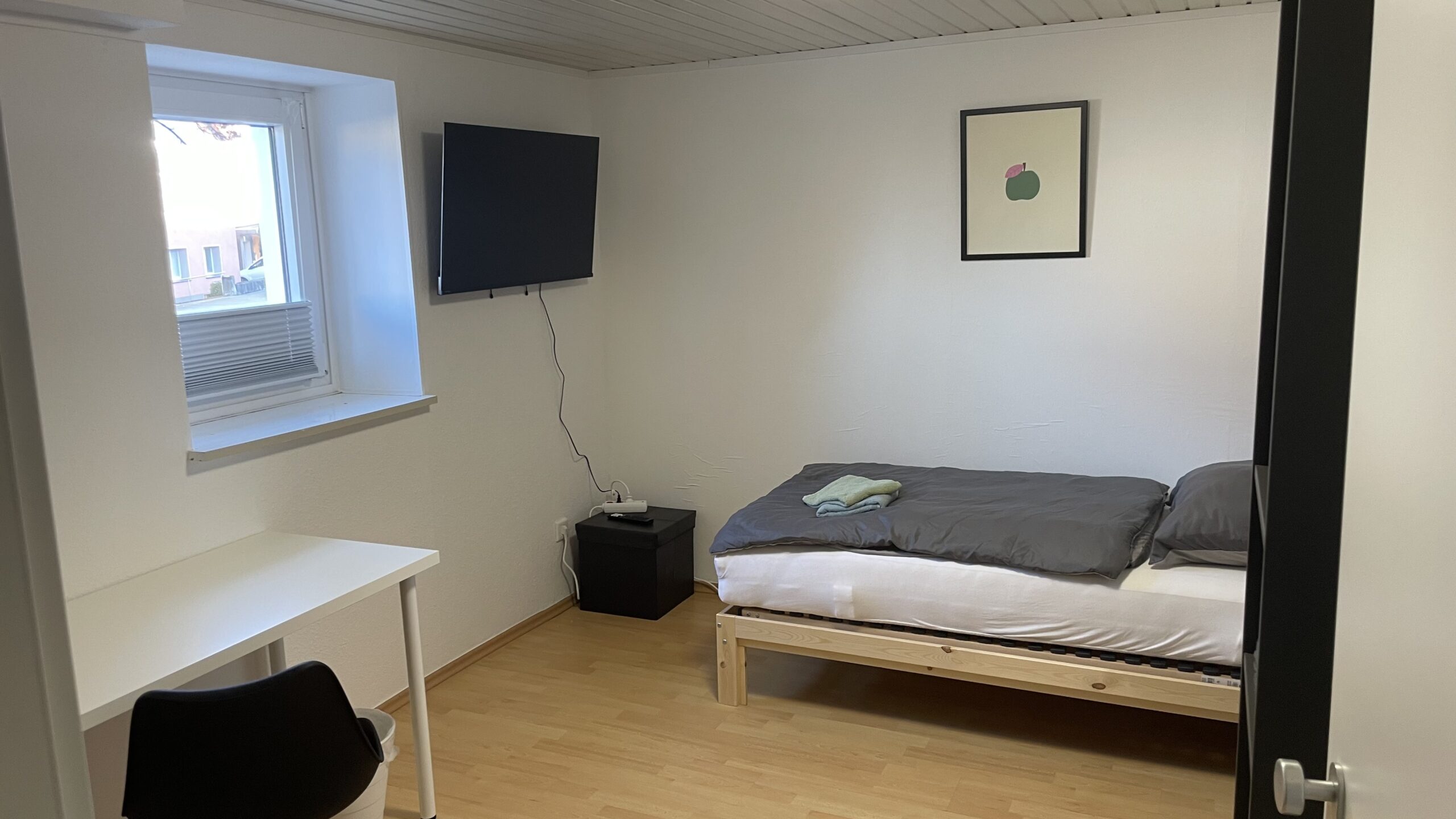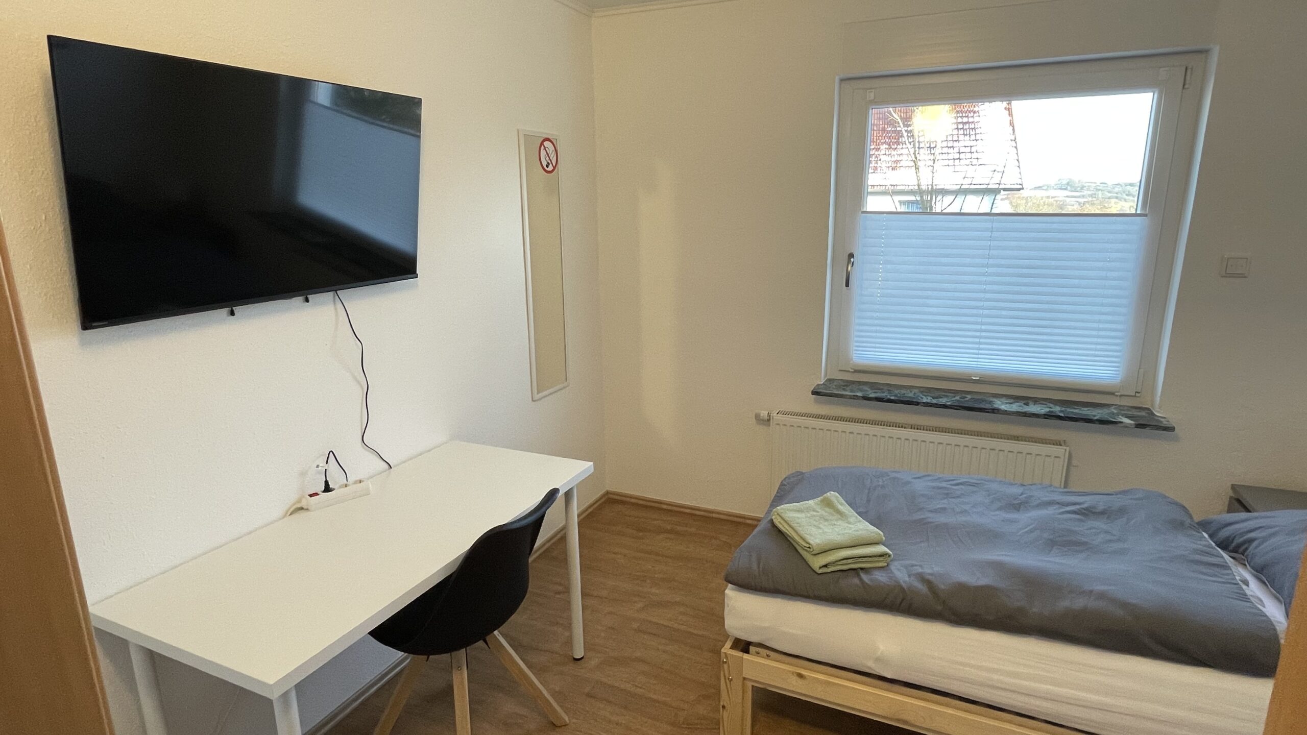 L'appartement dispose au total de 6 places de couchage, réparties en deux chambres individuelles et deux chambres doubles (lits jumeaux). Elle convient donc parfaitement aux équipes qui attachent de l'importance à un espace suffisant, à l'intimité et à un environnement de sommeil calme. Chaque chambre est équipée d'un téléviseur à écran plat 4K UHD Smart TV de 43 pouces. Bien entendu, toutes les chambres disposent d'une serrure de sécurité et peuvent être fermées séparément.