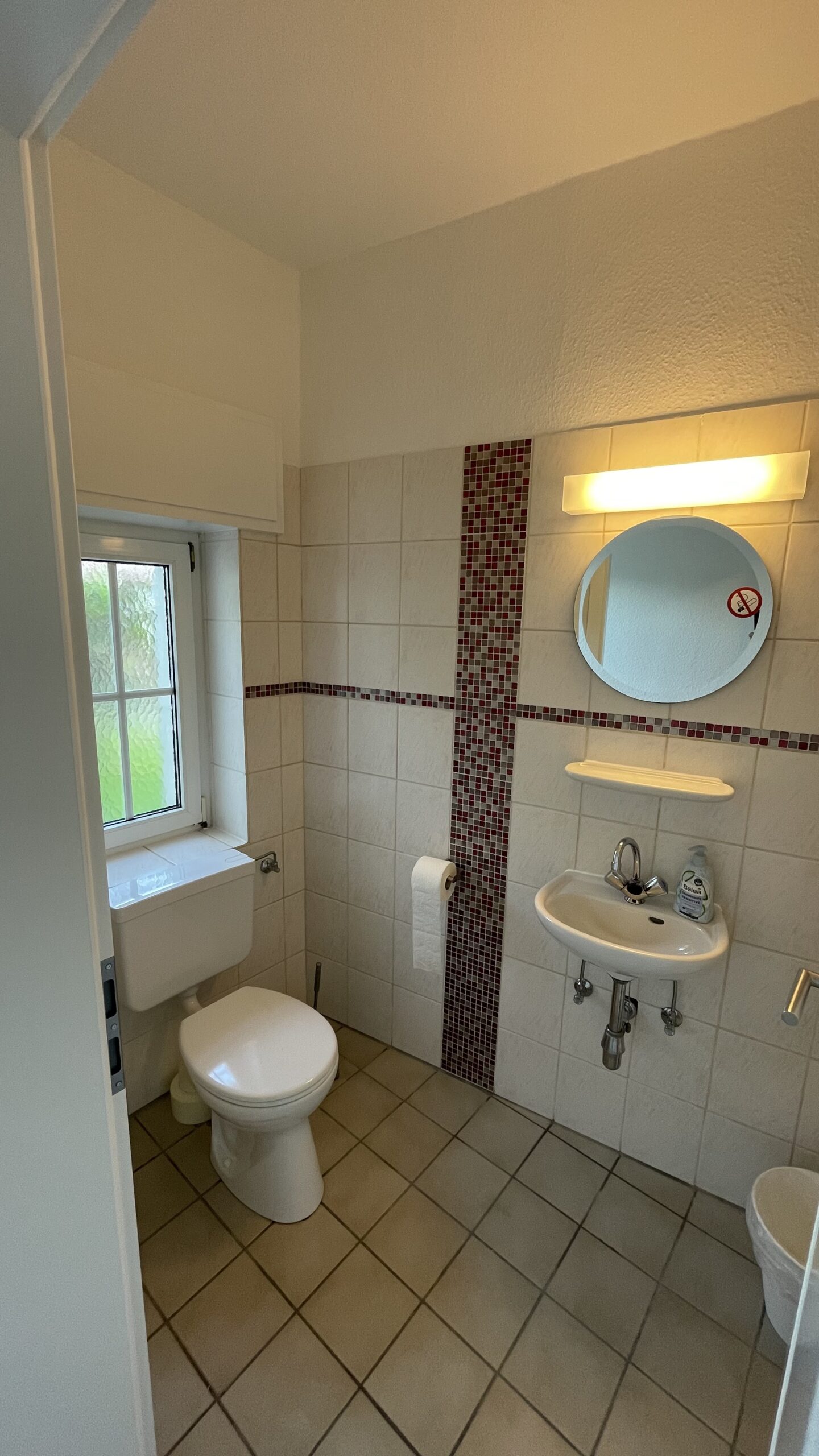 Nous disposons d'espaces sanitaires séparés pour les toilettes avec lavabo et la douche avec lavabo.