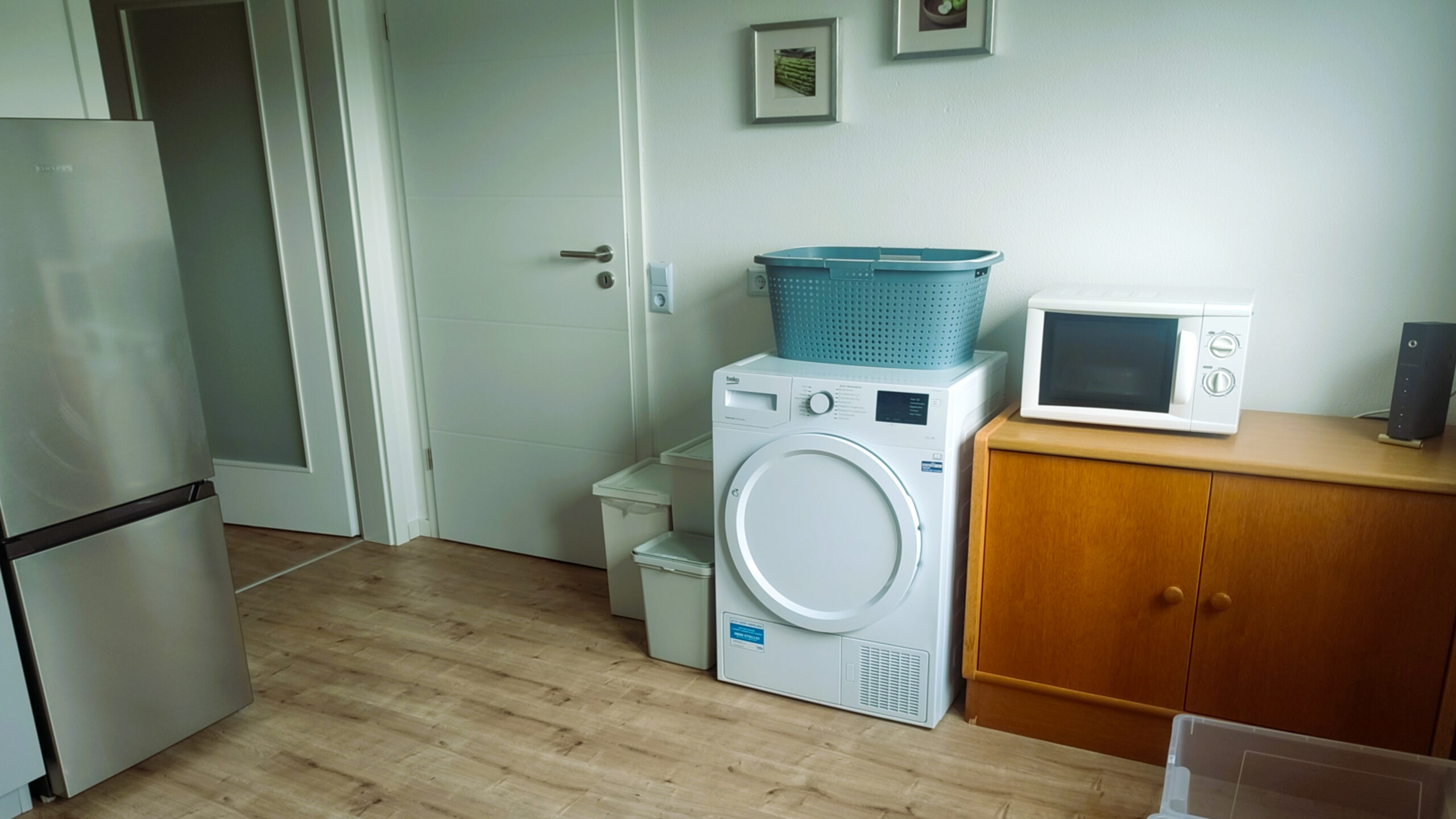 La cuisine commune est parfaitement équipée avec un grand réfrigérateur, un congélateur, une cuisinière avec plaques vitrocéramiques et four, un lave-vaisselle, un four à micro-ondes, une cafetière, une bouilloire, un grille-pain et tous les ustensiles de cuisine importants, de sorte que vous puissiez bien vous approvisionner vous-même.